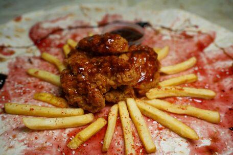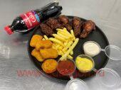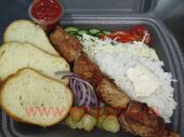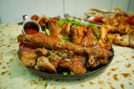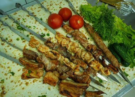 Сытный и ароматный сет из сочного куриного люля-кебаба(500г), приготовленного на огне, с нежным вкусом печёной картошки(650г) и ароматных шампиньонов(650г) которые подрумянились на огне. Идеальное дополнение два соуса,красный и белый по 50г и листовой лаваш.